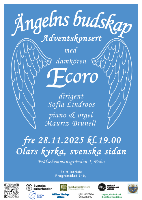 Med musiken i denna adventskonsert tar vi med stort hopp emot ängelns budskap om glädje och frid idag och inleder advent i våra hjärtan. Kom med och sjung in det nya kyrkoåret med Ecoro och få en försmak av julens glädje.