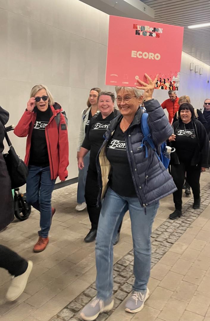 Dessutom deltog vi i Kuorojen kierros, som igen var ett härligt musikevenemang. Först sjöng vi på Senatskyrkans trappor med 2600 andra körsångare och sedan på stan, i metron, på metrostationer och på ett par krogar. Det uppskattades, folk stannade och lyssnade.